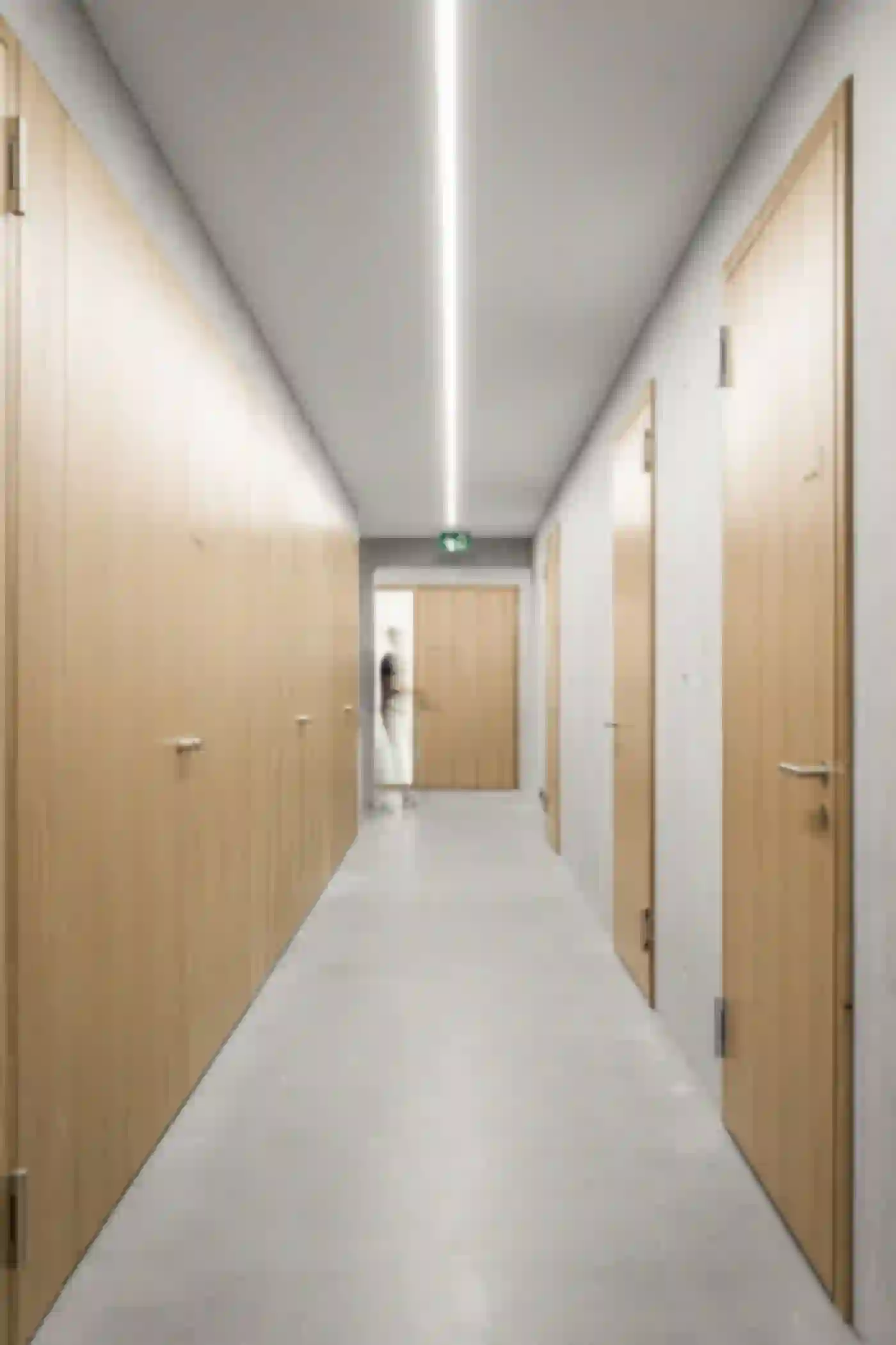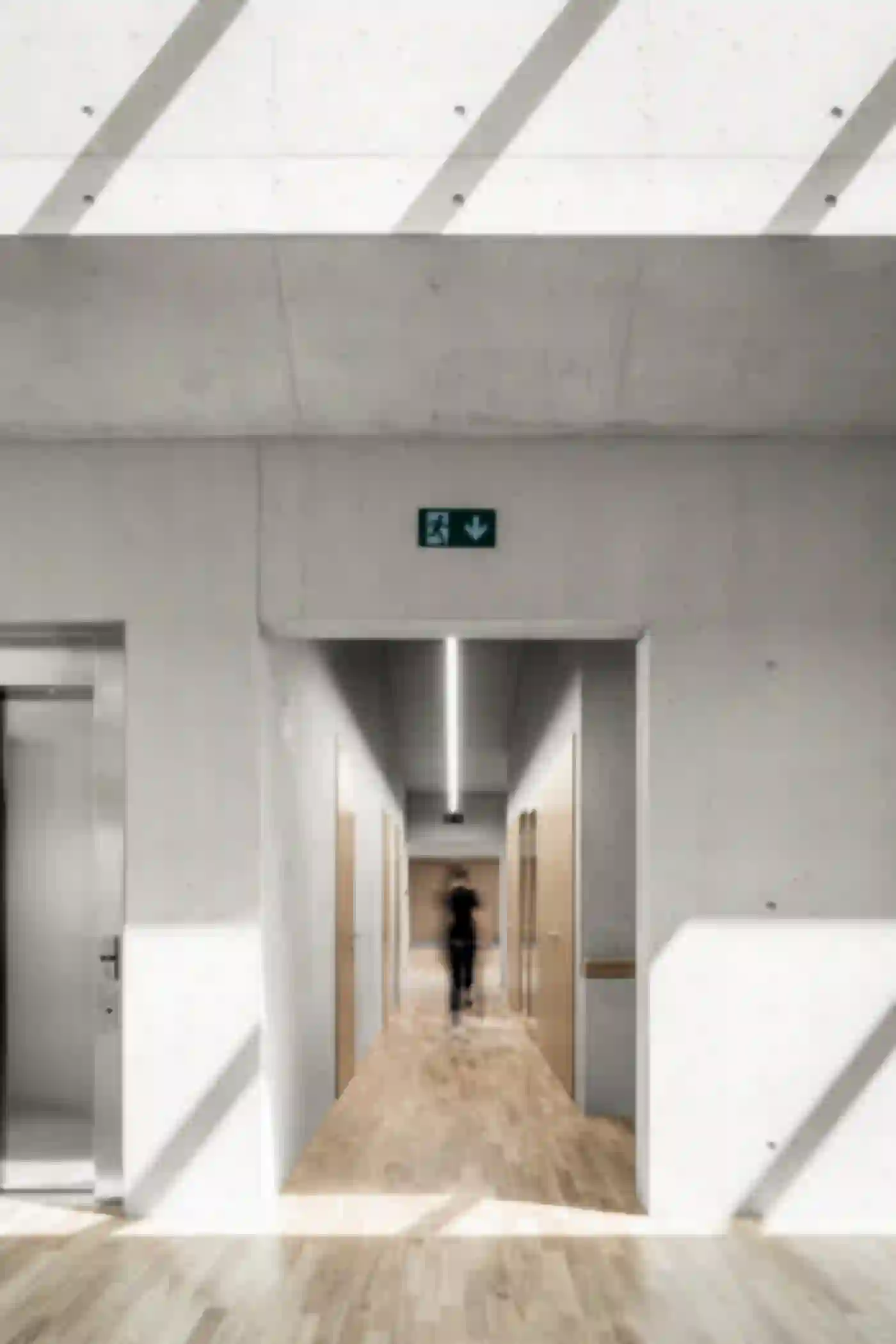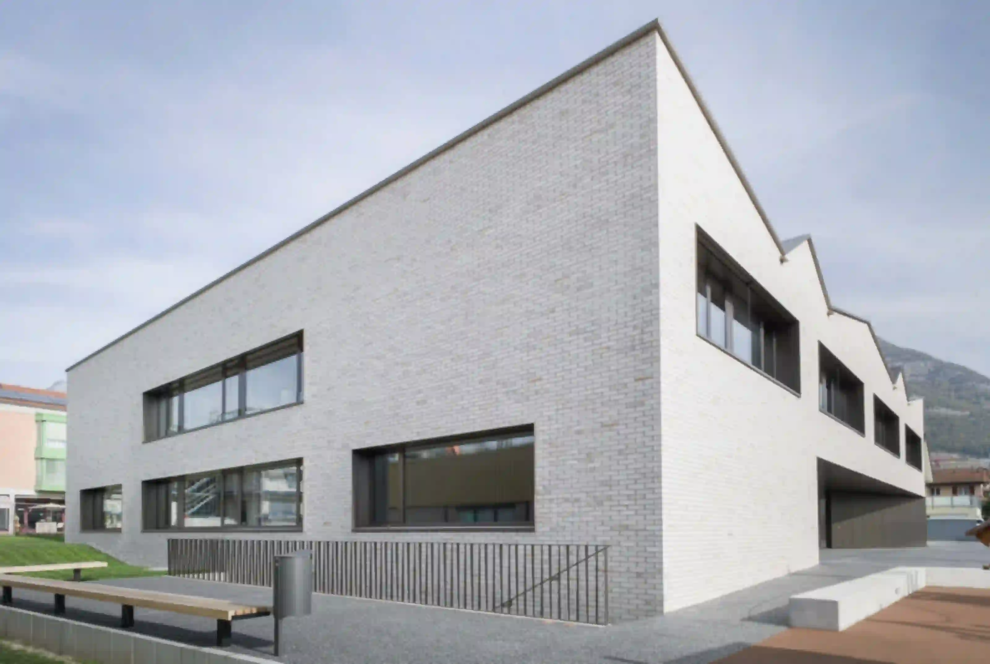 Der Neubau für die Fondation La Monneresse ist eine Förderschule für schwer erziehbare Kinder. Die Schule gliedert sich typologisch in zwei Teile – den Sockel mit übergeordneten Funktionen wie Verwaltung, Speiseraum und Eingangsbereich, und dem Klassentrakt im Obergeschoss. Man betritt das Gebäude zentral über ein Foyer mit Garderobe, von wo aus zwei Treppen zu den Unterrichtsbereichen führen. Dort umfassen je vier Klassen einen gemeinsamen Lerncluster. Die so entstehenden Raumeinheiten ermöglichen vielfältige Unterrichtskonfigurationen vom klassischen Frontalunterricht bis hin zu klassenübergreifendem Projektunterricht. Als Herzstück und von allen Klassenzimmern aus einsehbar lädt eine lichtdurchflutete Bibliothek zum Lesen und Stöbern ein. Eindeutiges Wiedererkennungszeichen des neuen Schulhauses ist sein mehrfach gefaltetes Dach. Gemeinsam mit einer klaren Materialisierung und Lichtführung verleiht es der Förderschule eine eigenständige Note.