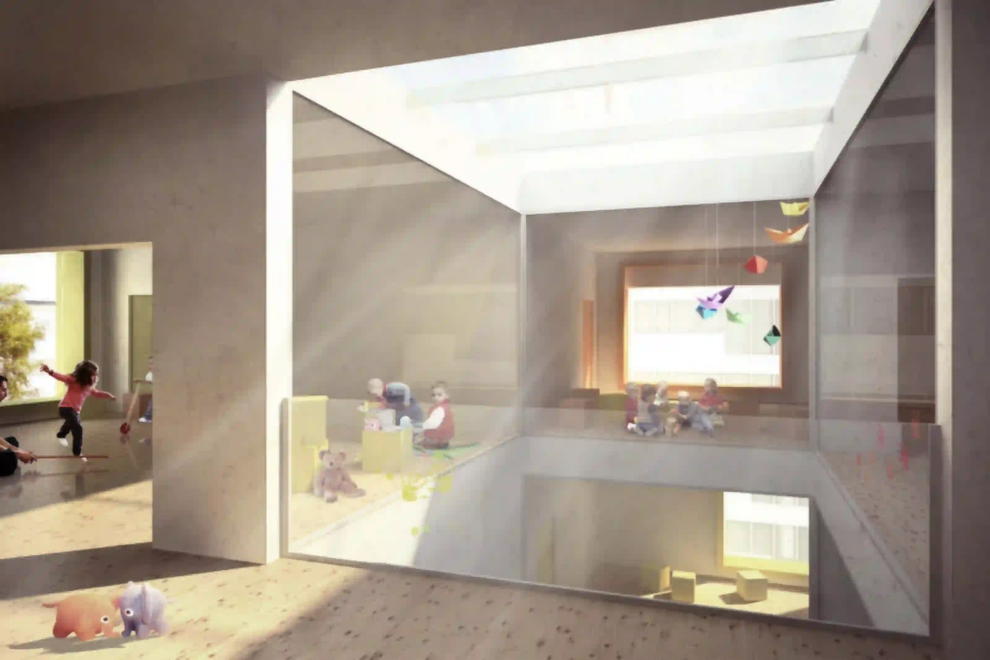 Kindertagesstätte, Turnhalle, Mehrzwecksaal, Betreuungs- und Gruppenräume