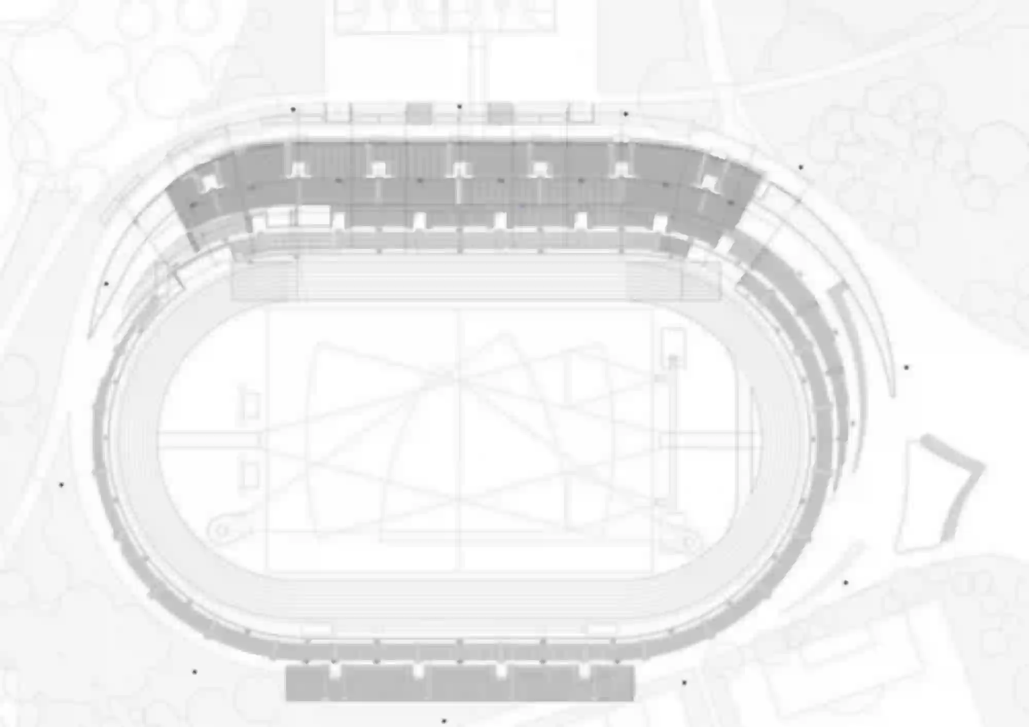 Der Entwurf zur Neuordnung des Stadions Pierre-de-Coubertin befindet sich im sensiblen Landschaftsraum am Ufer des Genfer Sees. Diesen zu schützen und in seiner Funktion als öffentlichen Raum zu erhalten ist oberste Prämisse des Entwurfs, weshalb der Grossteil des geforderten Raumprogramms in dem westlichen Hügel unterhalb der Haupttribüne verschwindet. Es werden Sitzplätze für 12'000 Besucherinnen und Besucher geschaffen, die insbesondere im Sommer ins Stadion strömen, um bei der alljährlich stattfindenden Athletissima dabei sein zu können. Durch die Einbindung der Ränge in die sanfte Topographie des Ortes gelingt dabei ein fliessender Übergang zwischen Gebautem und Landschaft, welcher Barrieren auflöst und das Stadion harmonisch mit dem Park verschmelzt.