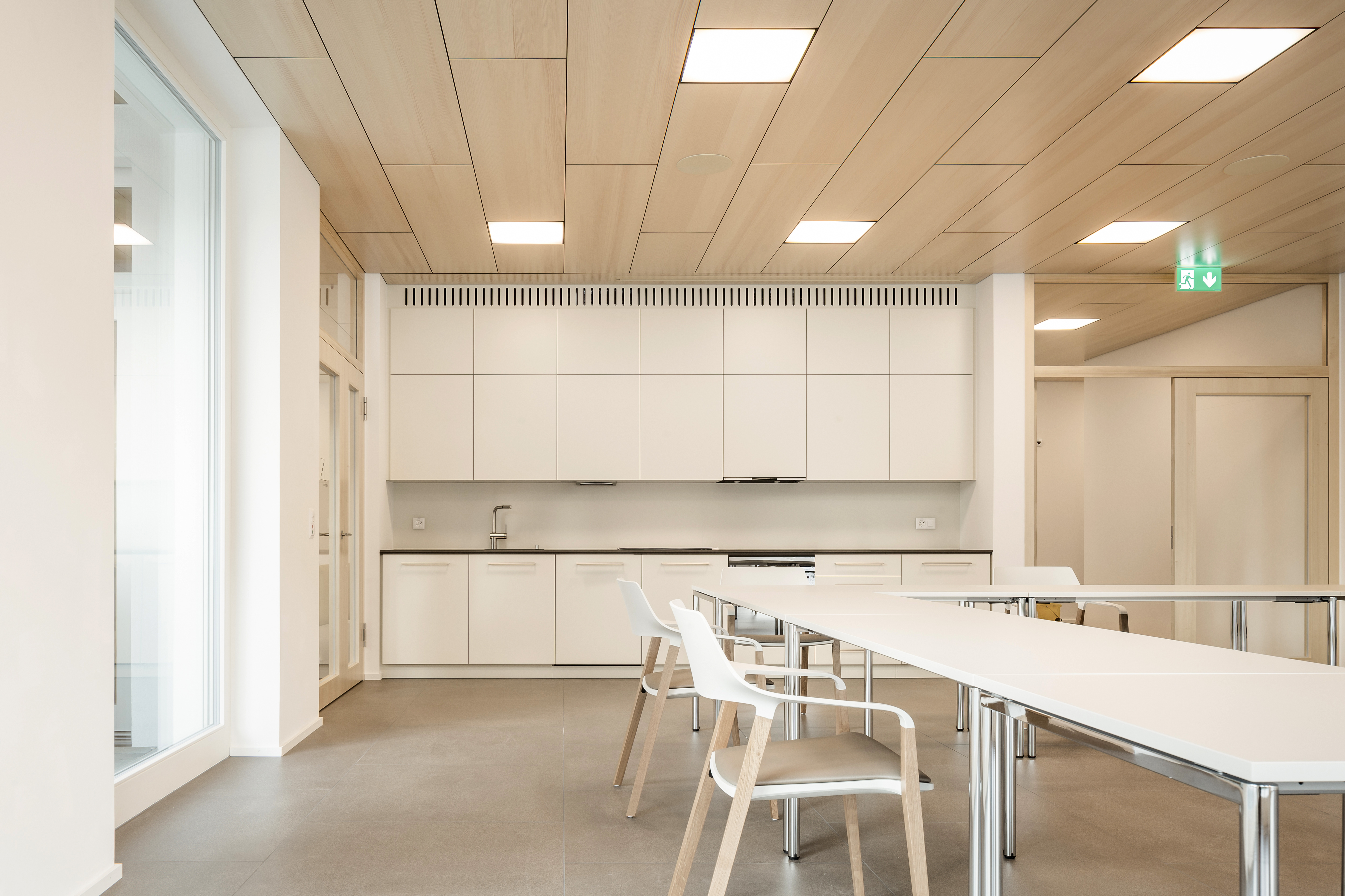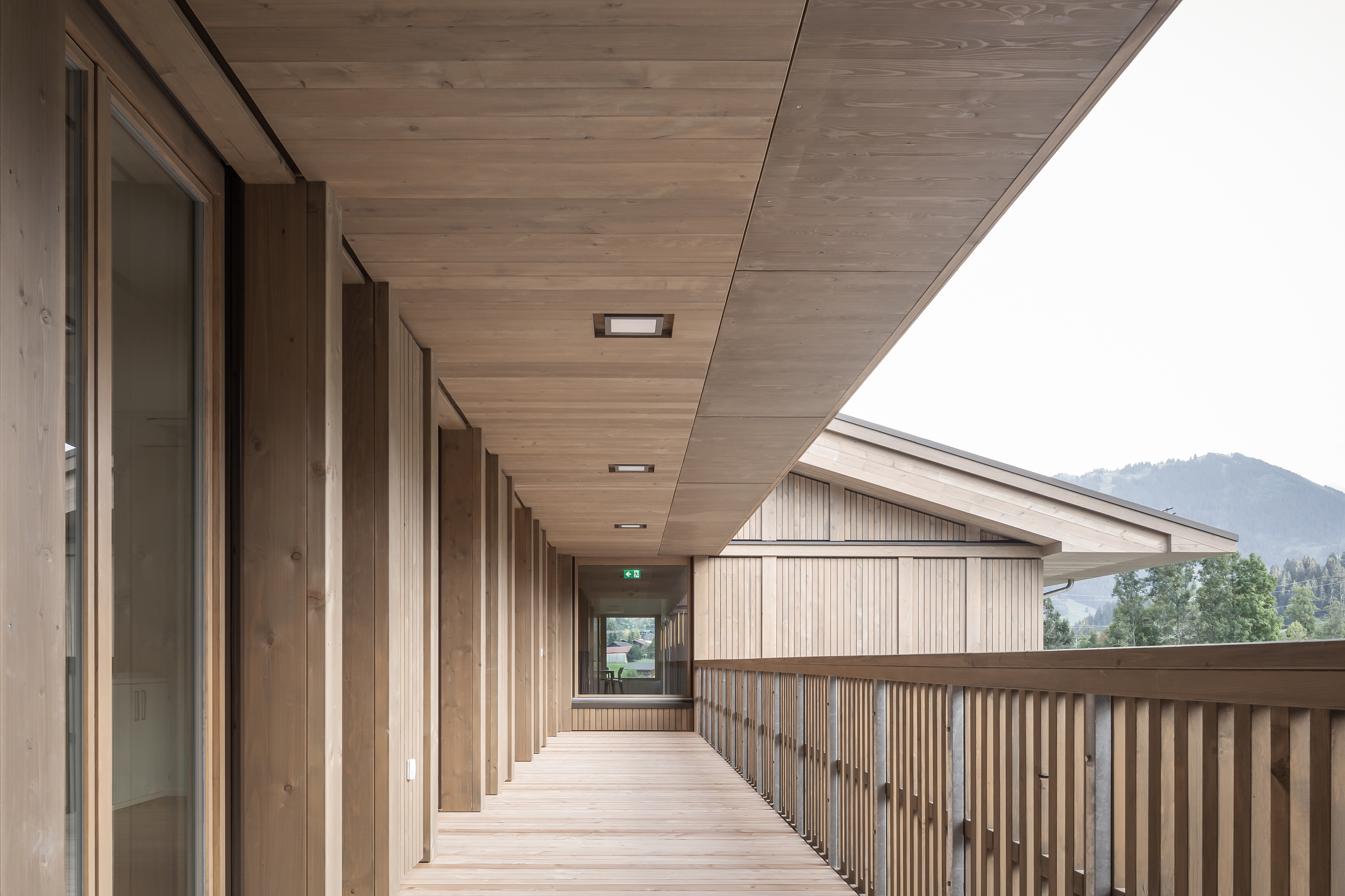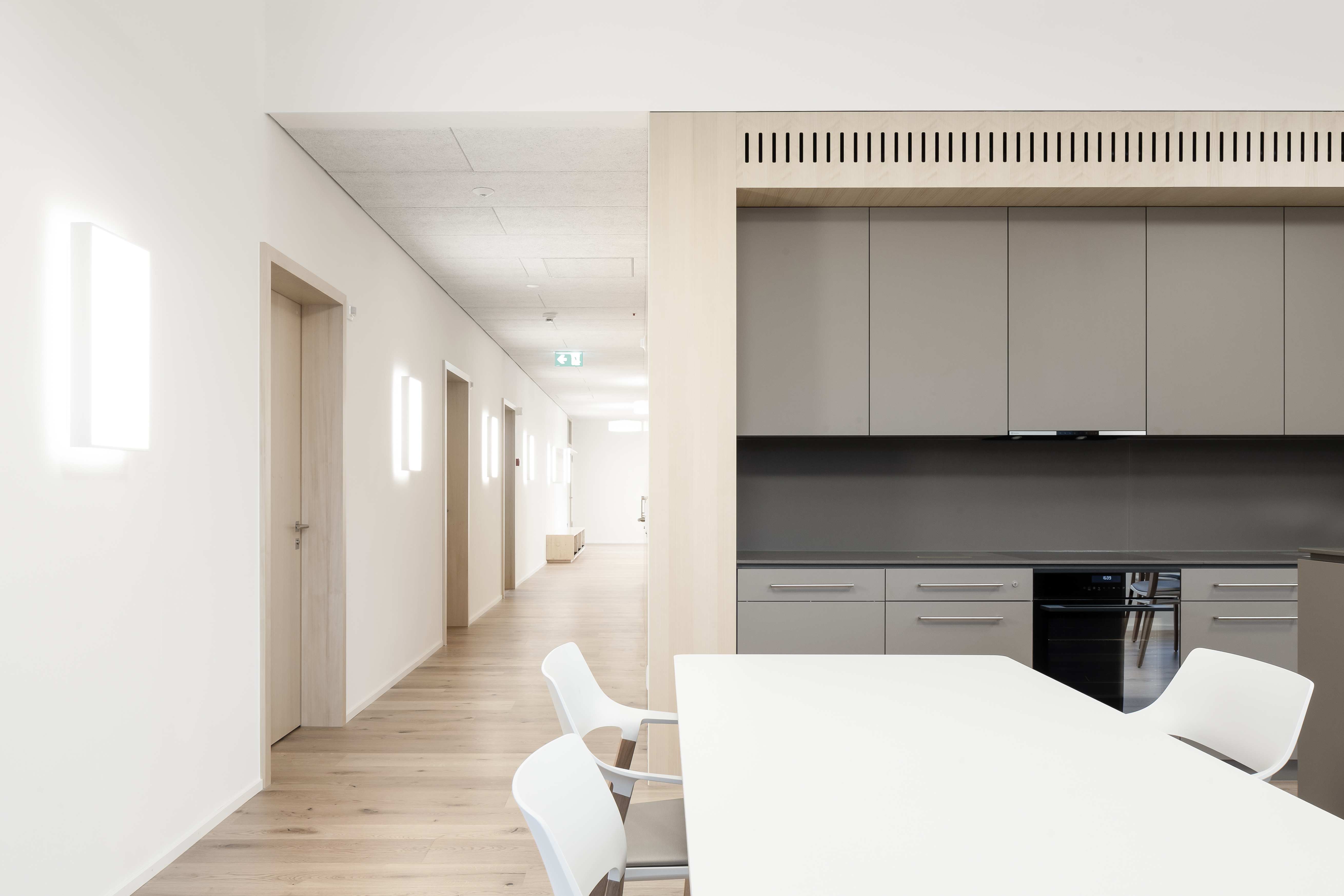 Die Stiftung Alpenruhe ist eine Einrichtung zur Betreuung und Förderung Erwachsener mit verschiedenen Behinderungen. Sie ist darüber hinaus seit langem ein beliebtes Freizeit- und Wochenendziel für Familien und Besucher der Region. Mit der Neuorganisation des Areals wird der Begegnung und Kontakt mit Besuchern mehr Raum gewährt und andererseits sichergestellt, dass die Bewohnerinnen und Bewohner ausreichend Privatsphäre sowie Rückzugsmöglichkeiten haben. Der Neubau organisiert Wohnheim und Café in einem dreifach gegliederten Volumen, dessen Architektur an die Bautradition des Saanenlandes anknüpft und dieses zeitgenössisch interpretiert. Vor- und Rücksprünge gliedern Eingang und Anlieferung und generieren an der Südseite des Gebäudes eine geschützte Terrasse. Das Erdgeschoss dient den gemeinschaftlichen Aktivitäten und der Begegnung, während in den Obergeschossen individuelle Wohngruppen entstehen. Putz, Holz und steinerne Oberflächen schaffen dabei ein natürliches und lebenswertes Wohnumfeld.